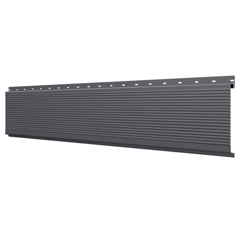 Линеарная потолочно-стеновая панель РИФЛЕНАЯ усиленная цвет RAL7024 Серый Графит применяется в качестве софитов для подшивы крыши, наружной и внутренней отделки потолков, стен, фронтонов фасада дома в Калуге.