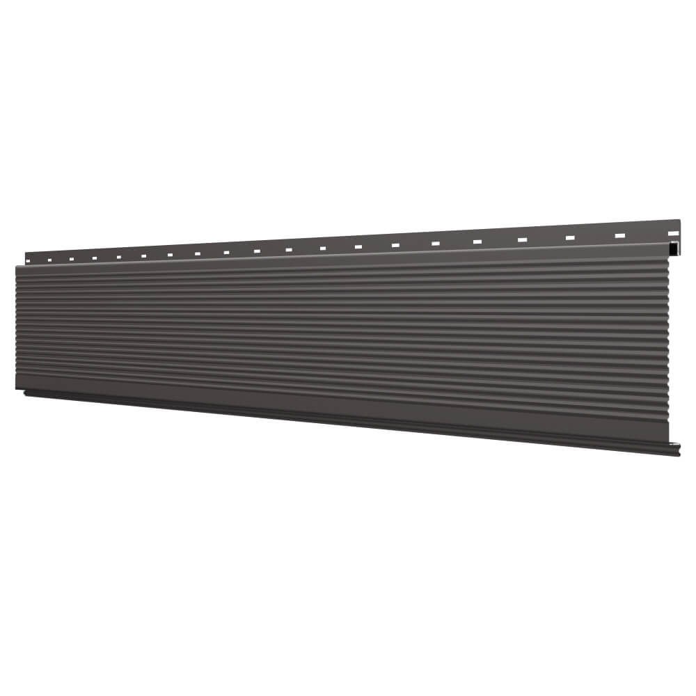 Линеарная потолочно-стеновая панель РИФЛЕНАЯ усиленная цвет RAL8019 Темный Шоколад применяется в качестве софитов для подшивы крыши, наружной и внутренней отделки потолков, стен, фронтонов фасада дома в Калуге.