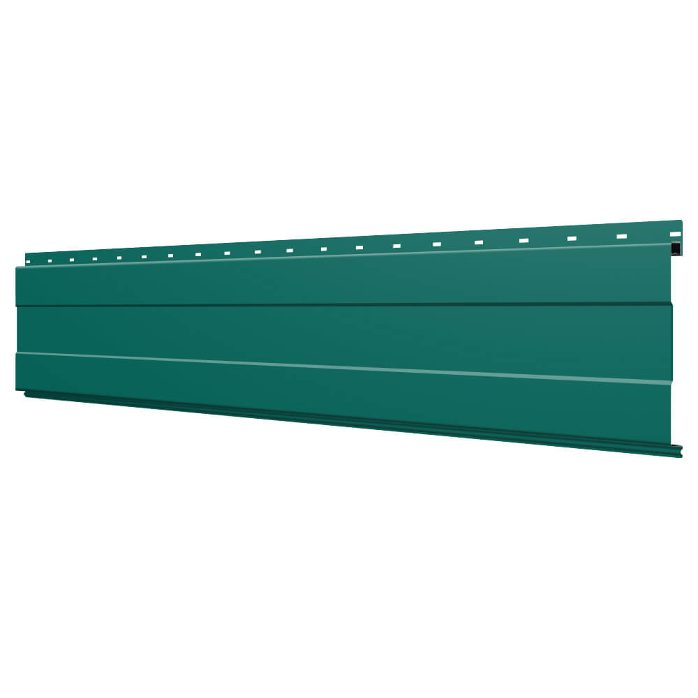 Линеарная потолочно-стеновая панель с ПОЛОСОЙ усиленная цвет RAL6026 Опал применяется в качестве софитов для подшивы крыши, наружной и внутренней отделки потолков, стен, фронтонов фасада дома в Калуге.