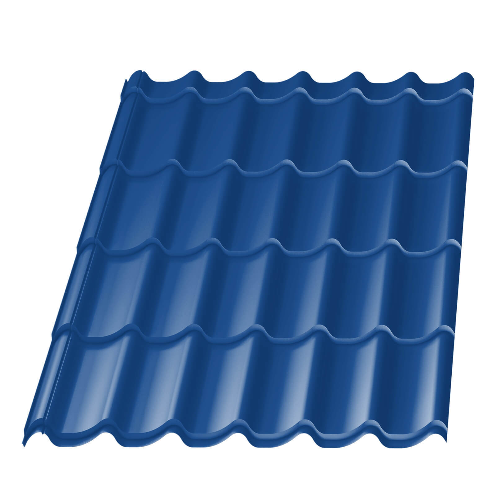 Металлическая черепица Меркурий цвет RAL 5002 Синий Сигнал имеет профиль внешне на кровле напоминающий классическую керамическую черепицу. Меркурий — это обновленный аналог профиля металлической черепицы для кровли крыши. Форма профиля имеет богатый внешний вид напоминающий небольшие набегающие волны. Лучшие показатели герметизации сделали профиль Меркурий гарантом стабильной и долговременной службы на крышах в Калуге. Данный профиль отличается не только своим качеством и практичностью, но и благородным внешним видом.