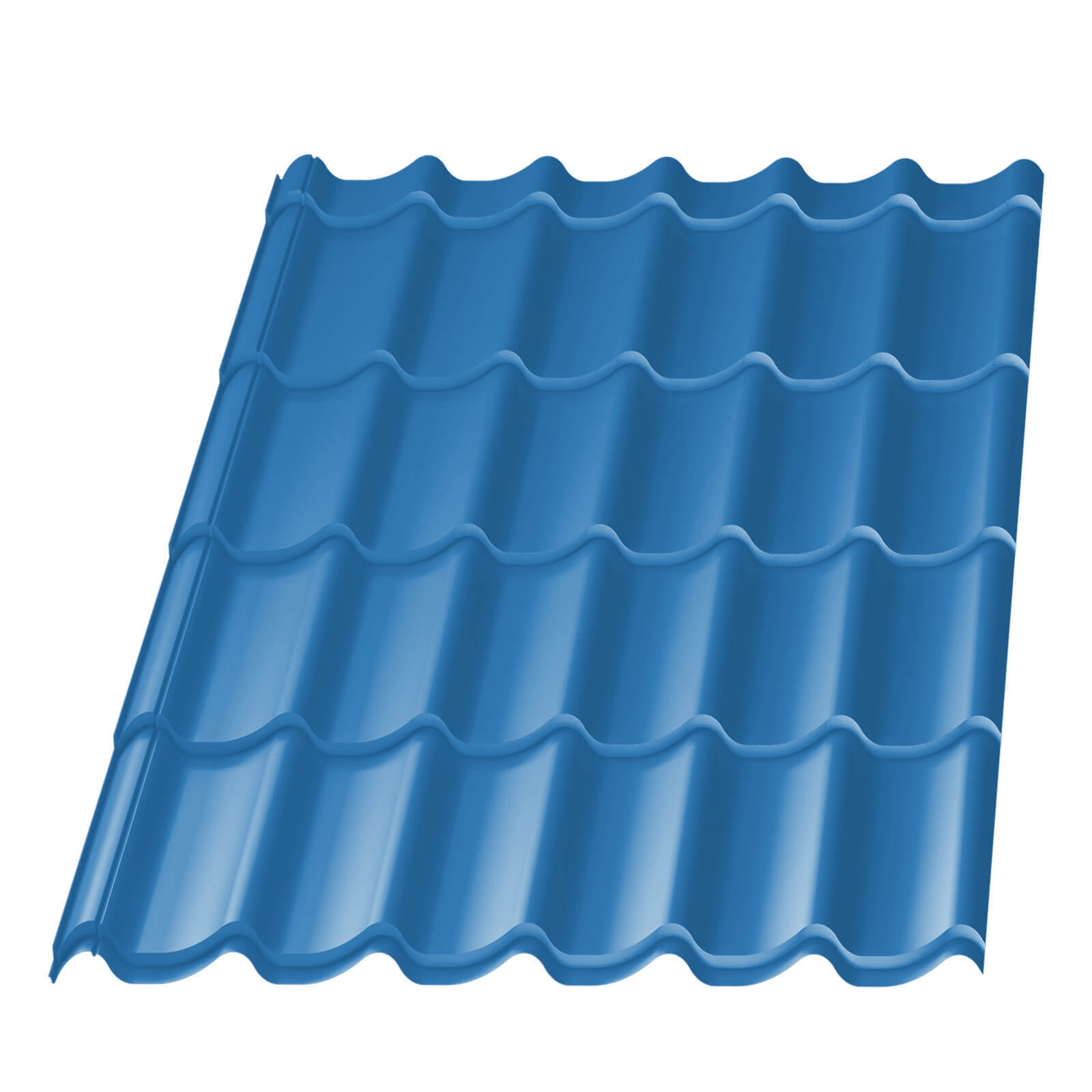 Металлическая черепица Меркурий цвет RAL 5015 Небесно-Голубой имеет профиль внешне на кровле напоминающий классическую керамическую черепицу. Меркурий — это обновленный аналог профиля металлической черепицы для кровли крыши. Форма профиля имеет богатый внешний вид напоминающий небольшие набегающие волны. Лучшие показатели герметизации сделали профиль Меркурий гарантом стабильной и долговременной службы на крышах в Калуге. Данный профиль отличается не только своим качеством и практичностью, но и благородным внешним видом.
