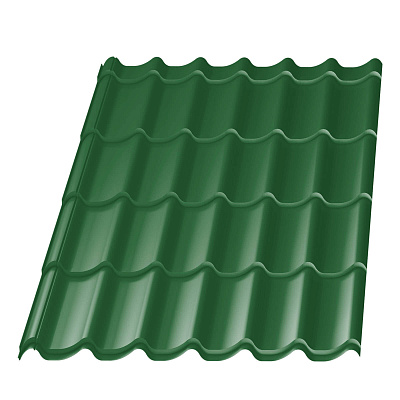 Металлическая черепица Меркурий цвет RAL 6002 Зеленый Лист имеет профиль внешне на кровле напоминающий классическую керамическую черепицу. Меркурий — это обновленный аналог профиля металлической черепицы для кровли крыши. Форма профиля имеет богатый внешний вид напоминающий небольшие набегающие волны. Лучшие показатели герметизации сделали профиль Меркурий гарантом стабильной и долговременной службы на крышах в Калуге. Данный профиль отличается не только своим качеством и практичностью, но и благородным внешним видом.