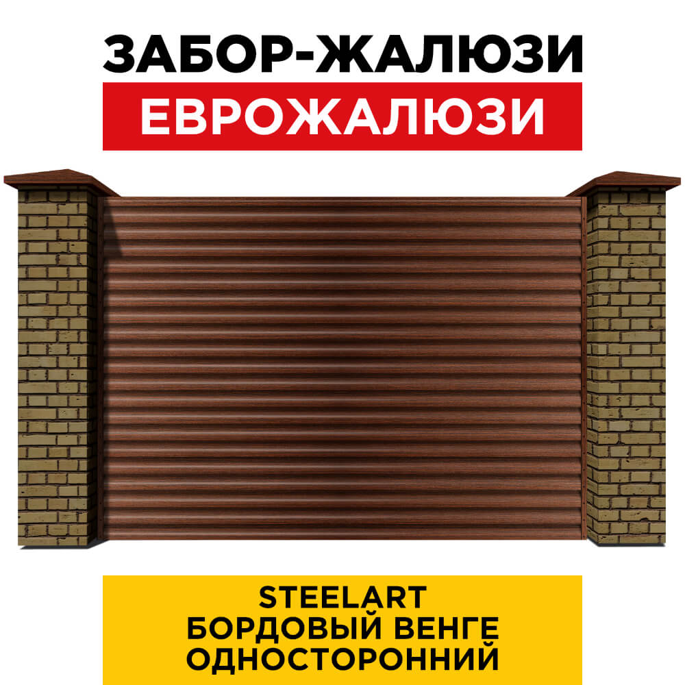 Ламель Еврожалюзи металлическая S-образная, цвет под дерево Бордовый Венге SteelArt Россия одностороннее покрытие, длина любая кратно 1см под заказ - для забора-жалюзи, беседки, перголы в Калуге