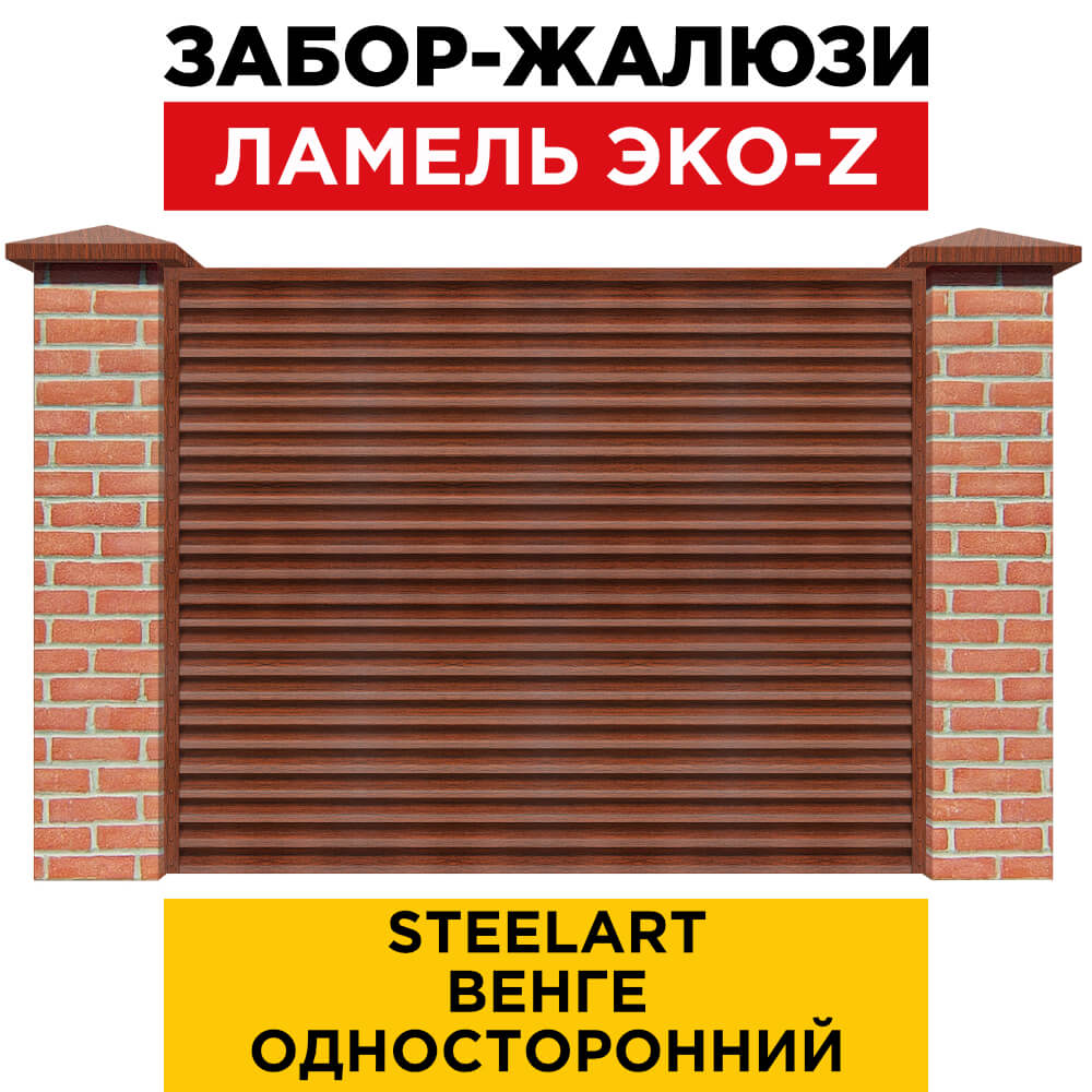 Ламель металлическая Z-образная простая ЭКО-Z, цвет под дерево Венге SteelArt одностороннее покрытие, длина любая кратно 1см под заказ - для забора-жалюзи, беседки, перголы в Калуге